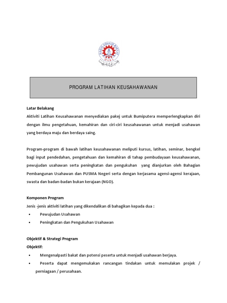 Program Latihan Dan Bimbingan Usahawan Pdf